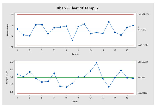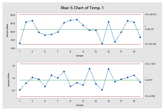 X-bar-S control chart for temperature.