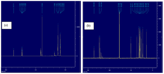 (a) 1H NMR spectra of IL4-Oil, (b) 13C NMR spectra of IL4-Oil.