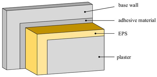 In relation to the insulation of buildings, not only thermal insulation regulations and needs must be taken into account, but also sound insulation. EU regulations encourage member states to also pay attention to sound insulation, as environmental noise pollution is a global problem. If EPS is combined with plaster of suitable thickness, significant results can be achieved []. Figure 1 shows such a combined structure.