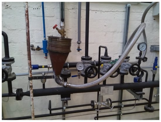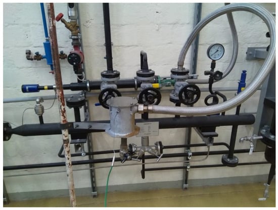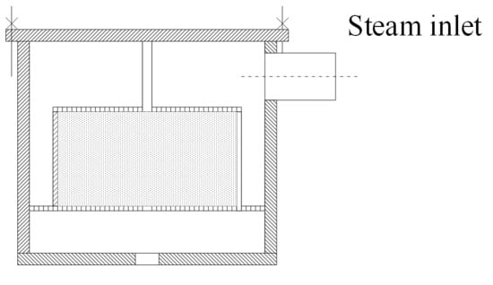 The production of the EPS samples begins with the pre-foaming of small polystyrene particles so the size of the particles can be increased by 20–50 times due to the pentane in the small particles under the influence of steam. It is important that the pressure of the steam must be 1 bara, which means saturated water steam at around 100 °C. The “heat treatment” lasts approximately 15–20 min. The balls of increased particle size are filled into the shaping vessel, which is blown through with steam at 115–120 °C. Figure 3 shows the pdf of the designed steam system.