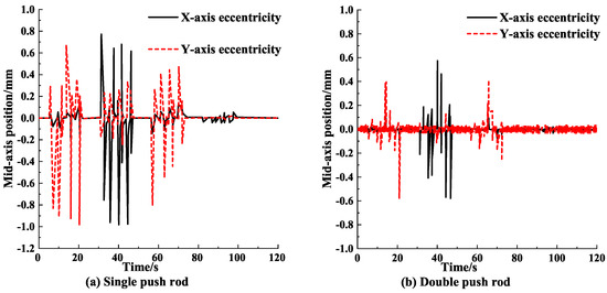 The displacement of the mid−axis of the single push rod support adjustment mechanism, double push rod−double spring support adjustment mechanism under casing wear obstacle.
