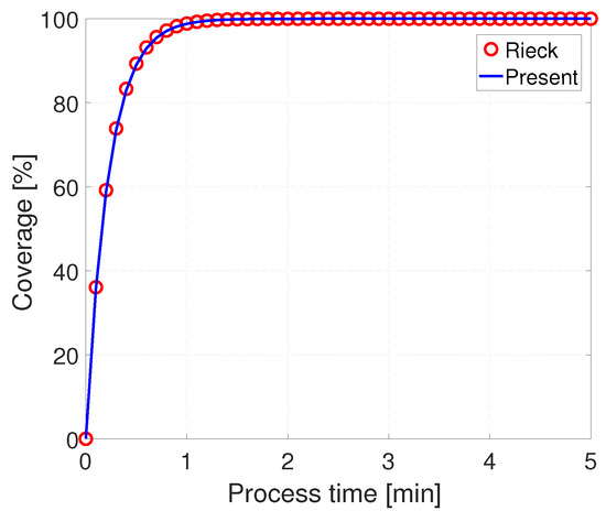 Figure 8 shows identical results for the development of coverage on the particle with process time for both models, Rieck’s model [