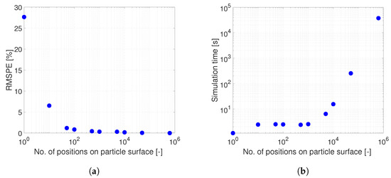 Figure 9, the RMSPE is decreasing, on the contrary the simulation time is increasing with increasing number of positions considered on particle surface. Therefore, the number of positions should be high enough as to represent the whole particle, but not too high, since more positions mean more simulation time and cost.
