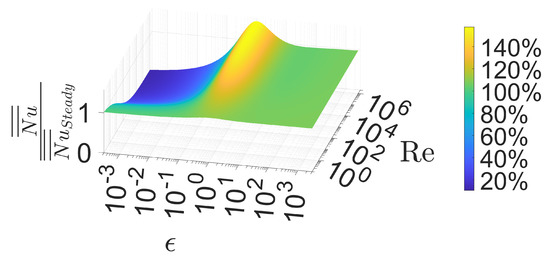 Several authors concluded that, for a large enough amplitude parameter , the HMT in oscillating flow can be described by correlations for steady flow with sufficient accuracy. In these cases, the quasi-steady assumptions hold true.