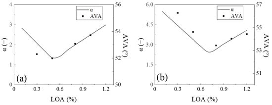 Effects of encapsulating materials at LOA of 0.8%. (a) AOR; (b) AVA.
