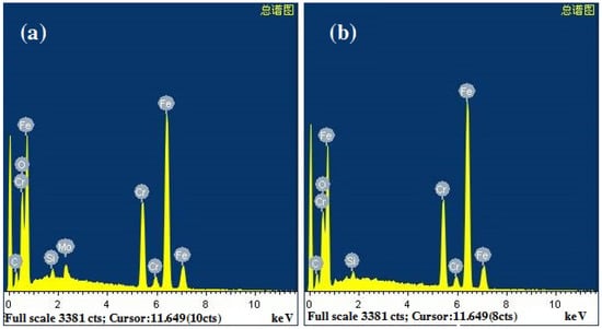EDS energy spectrum analysis of the coatings: (a) The original state of the coatings; (b) high-temperature (500 °C) aging for 1000 h.