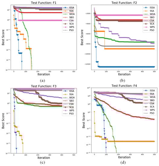 To prove that ISSA has good convergence and global search capability, we selected some existing optimization algorithms, as shown in Table 5, and some common benchmark functions, as shown in Table 6, for the comparison test. Since intelligent search algorithms have a certain randomness, to ensure the experiment’s reliability, we run each algorithm on the benchmark function 30 times and take its optimal solution; the specific results are shown in Table 7.