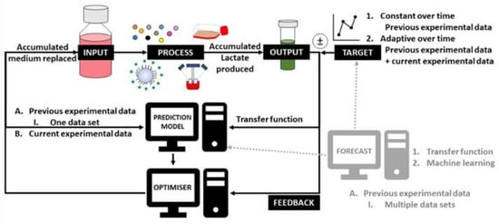 Cell culture processes involving living systems are still far from being perfectly monitored and controlled as compared to chemical production processes [40,41,42,43]. This is because biosystems are complex, individually different, time-varying and dynamic [44]. The cell characteristic depends on many factors including the passage number, donor age, seeding density and medium replacement strategy, all of which affect the presence of nutrients and metabolic by-products [14,45,46]. In case a chemical process starts from a raw material that has a certain deviation from the standard raw material, the process can be adapted taking this initial deviation into account. However, whether a certain cell batch will grow faster or slower than the ‘standard’ batch cannot be predicted or measured like a physical characteristic of a raw material in a chemical process. Therefore, it is an advantage to apply an adaptive control strategy that will learn the characteristics of the considered cell batch and adapt to it as quickly as possible.