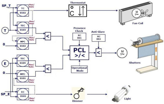 - Mitsios, I.; Kolokotsa, D.; Stavrakakis, G.; Kalaitzakis, K.; Pouliezos, A. Developing a Control Algorithm for CEN Indoor Environmental Criteria—Addressing Air Quality, Thermal Comfort and Lighting. In Proceedings of the 2009 17th Mediterranean Conference on Control and Automation, Thessaloniki, Greece, 24–26 June 2009. [Google Scholar] [CrossRef]