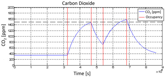 The formulated IAQ model can be suitably extended to different room configurations and features and to multi-room environments. For example, if a multi-room environment is assumed, a set of equations (similar to Equations (16)–(18)) for each room must be included in the model.