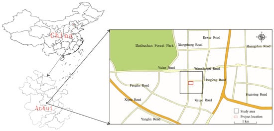 To verify the reasonableness of the above calculation method of the heat penetration distance, a vertical GCHP system project in Hefei (the location of the project is shown in Figure 1) is taken as an example, and a three-dimensional hydro-thermal coupling numerical simulation is carried out.