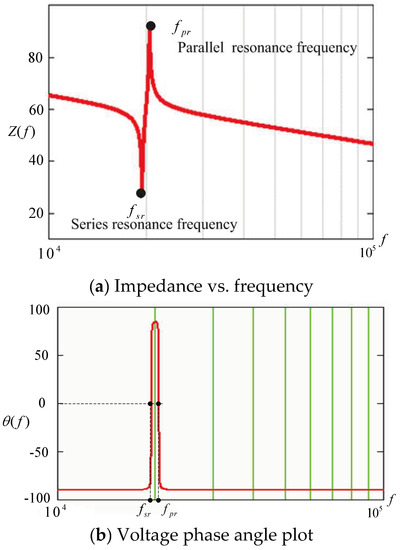 where fsr is the series resonance frequency and fpr is the parallel resonant frequency. Figure 2 plots the impedance gain and phase angle for the piezoelectric ceramic. In this figure, the following characteristics can be written.