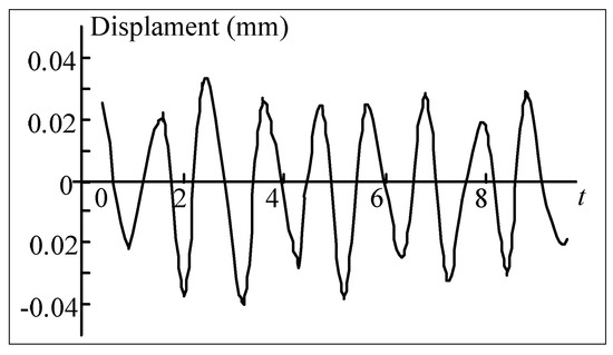 This test is focused on the circuit verification for the ultrasonic welding application. To carry out the test, the input voltage is set at 100 and 120 volts. This ensures that the waveforms of ceramic current and voltage are measured under the different dc-source voltages. Figure 12 depicts the experimental results, where the phase angle of voltage leads that of the current, indicating that the piezo ceramics can be viewed as an inductive load. Meanwhile, as the circuit is not influenced by the variation of input ac voltage, the output voltage waveform for each case can be maintained almost the same. Figure 13 shows the displacement of the ultrasonic welding joint under the tests. The measurement results show that the maximum displacement is near 0.075 mm. The generated displacement is sufficient to rapidly weld the plastic, thus verifying the practicability of the proposed method.