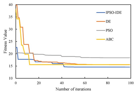 GA is an intelligent bionic algorithm proposed earlier, which is the theoretical basis of many algorithms. It simulates the calculation model of Darwinian biological evolution theory, mainly including the steps of establishing the initial population, calculating the individual fitness of the population, and iterating out the optimal individual through cross-mutation and other operations []. Since the mutation operation of GA is not targeted, the probability of forming a better offspring population is not high. As a classical algorithm, GA is often mixed with heuristic algorithms to solve problems, such as ant colony algorithm (ACO). Kamel et al. combined PSO and GA to improve the prediction performance of the model []. Memon et al. proposed a hybrid optimization algorithm based on GA and APSO []. However, the improved GA is still inefficient in solving the problem [].