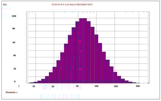 The graph of particle size distribution of TiO2 NPs displayed average particle size (hydrodynamic diameter) of (74.8 ± 0.649) nm. Whereas, in a previous work, the leaf extract of Juniperus procera synthesized large-sized nanoparticles with a broad size distribution ranged from 30–90 nm [46].