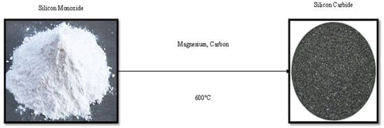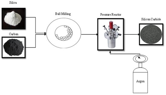 - Zhong, Y.; Shaw, L.L.; Manjarres, M.; Zawrah, M.F. Synthesis of silicon carbide nanopowder using silica fume. J. Am. Ceram. Soc. 2010, 93, 3159–3167. [Google Scholar] [CrossRef]