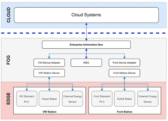 The study conducted by the authors represents a vertical use case from shopfloor to cloud of a real implementation of cloud-based applications used by robotic cells that complies with Ford and VW production standards. From this study, it is possible to see a cloud application cable that can be used by any machine or software as long as it is connected to the middleware [27].