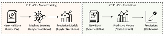 The developed API contains several flows and nodes to work properly. However, this paper addresses only the most relevant steps, namely the communication with the Apache Kafka and the nodes that contains the ML predictive models. As such, six steps were identified: