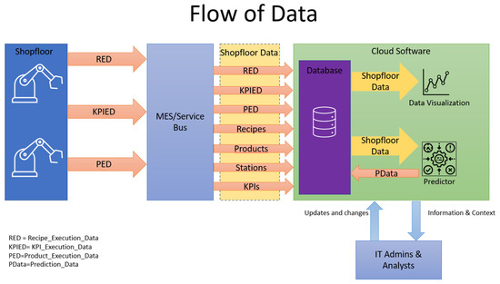 Finally, the cloud applications, use the data at their disposal to generate information or knowledge, which is then stored in a database or passed as parameters to the shopfloor. These applications can vary in complexity and usefulness, as they can be databases, optimization software, data visualization applications and data processing software, among many other useful applications relevant to the industrial environment.