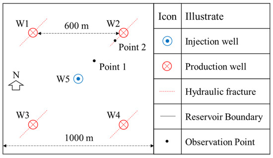 With the development of oil and gas exploration and technology, oil and gas development has shifted from conventional reservoirs to unconventional reservoirs that have low permeability and are difficult to produce in China. Hydraulic fracturing is a key technology for the effective production and economic development of unconventional reservoirs [1,2,3]. Conventional water and chemical flooding can improve reservoir recovery to a certain extent; however, there are still related problems in the development of low-permeability reservoirs [4]. The conventional fracturing process is complex, expensive, has a small scope for fracture control, and the effect of reservoir stimulation is poor. Conventional water flooding has poor hydrodynamic connections, extensive water channeling and flooding, and non-Darcy flow characteristics of fluids, which lead to problems such as “no injection and no production” in low-permeability reservoirs. In conventional chemical flooding, the oil displacement agent adsorbs and remains in the pores of the formation rock, and the concentration decreases, which leads to a reduction in the oil displacement efficiency [5]. Therefore, “fracture-injection-production” integrated reservoir simulation technology (fracturing flooding) was proposed for the oilfield sites, which perfectly combines hydraulic fracturing technology, conventional water flooding development, and chemical flooding to form a set of continuous development technologies [6].