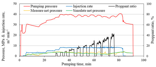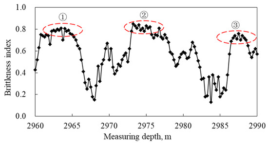 The brittleness index was then calculated using Equation (3). Finally, according to the calculation results, the formation with a high brittleness index was selected as the perforation location; thus, the extension position of the hydraulic fractures in the reservoir could be determined.