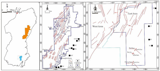 Location of the middle-high rank coals ((a) Qinshui Basin (b) Yushe-wuxiang Block (c) Shizhuangnan Block)) (Cited from Zhang et al.).