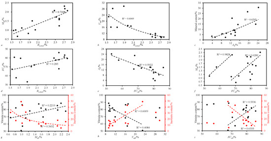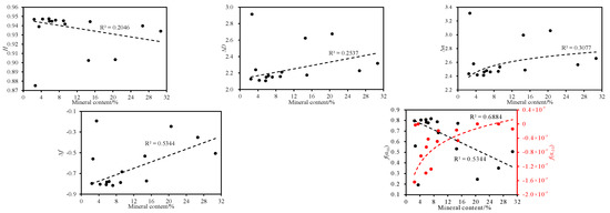 In coal composition, mineral content has a weak negative correlation with H and a weak positive correlation with ΔD, Δα and Δf (Figure 11), which means that the increase in mineral content enhances the complexity of pore structure and deteriorates the pore connectivity of the reservoir. Heterogeneous coal macromolecules are interlinked to form extremely rough and uneven pore surfaces [40], and most minerals accumulate and fill in the pore-fracture system of the coal matrix. Due to the influence of mineral blockage, the pore structure in coal is more complicated. Clarkson and Wilson believed that mineral filling would produce obvious protrusions and increase the irregular and disordered surface shape of coal samples [41], and the roughness of the pore surface and the complexity of the pore structure are increased. Removing the mineral particles filled in the pore can simplify the pore structure and increase the homogeneity of the pore structure.