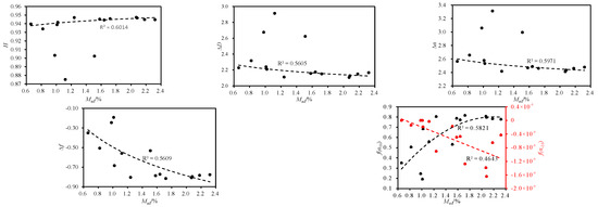 With the increase in Mad, the f(α10) value of medium-high rank coal increases, while the value of f(α-10) decreases. With the increase in Mad, the proportion of the homogeneous region gradually increases, while the proportion of the heterogeneous region decreases, the pore structure tends to be homogenized, and the pore connectivity is enhanced. Therefore, Mad is positively correlated with H and negatively correlated with ΔD, Δα and Δf (Figure 10). With the deepening of dryness (Mad decreasing), the H value of the middle-high rank coal reservoir shows a downward trend [38]. The ΔD, Δα and Δf values of medium-high rank coal show an increasing trend, which means that the increase in internal moisture in coal enhances the heterogeneity of the pore structure of medium-high rank coal while reducing its connectivity, which may be closely related to the capillary phenomenon in the pore. Under the action of capillary force, the water molecules in the medium-high rank coal adsorb on the pore surface or fill in the small size pores and throats, and the reservoir changes from the macropore-micropore coexisting type to the micropore dominant type, with narrow pore throats and homogenization of pores [39].