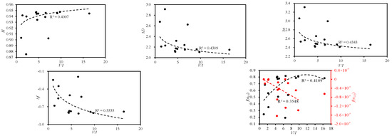 To more clearly reveal the relationship between the coal macerals and the heterogeneity of pore structure, the correlation between V/I and multifractal parameters was analyzed. With increasing V/I, the overall H of medium-high rank coal increases, while the values of ΔD, Δα and Δf decrease (Figure 12). With the increase in V/I, the proportion of homogenous regions in the pore structure of medium-high rank coal increases and gradually dominates, while the proportion of heterogeneous regions decreases, and the pore structure tends to be homogenized; that is, compared with inertinite-rich coal, vitrinite rich coal has lower heterogeneity and better pore connectivity. This is because the micropore size difference of coal is small, and the difference in micropore volume depends on vitrinite content [42]. This result is similar to that of Lin et al. [43].