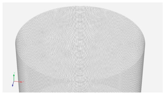 To solve the fluid-dynamics equations or Navier-Stokes equations, the geometry must be divided into small volumes named cells. The group of cells is referred to as the mesh. There are different types of meshes; for the present work, a structured hexahedral mesh was developed. The mesh has 1,925,440 cells, which makes a volume average of 0.3 mm3/cell. An image of the mesh can be observed in Figure 2.