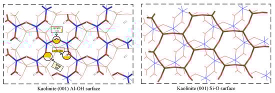 - Miao, Y.Q.; Yan, H.S.; Qiu, X.H.; Zhou, X.W.; Zhu, D.M.; Li, X.B.; Qiu, T.S. Adsorption of hydrated Al3+ on the kaolinite (001) surface: A density functional theory study. Appl. Clay Sci. 2022, 225, 106498. [Google Scholar] [CrossRef]