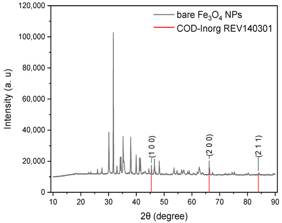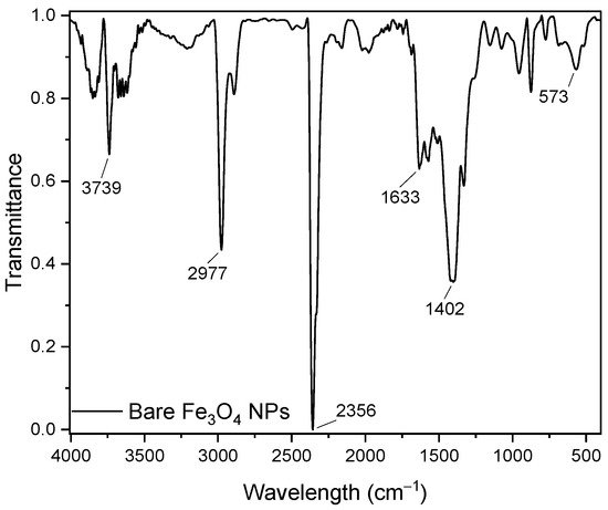 3.3.1. Characterization of Bare Fe3O4 NPs