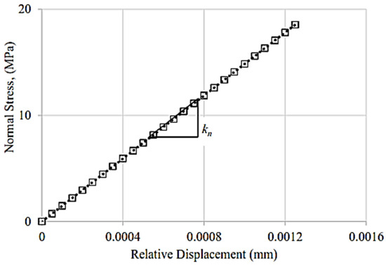 The highest amount of tensile stress was 19.82 MPa, known as the tensile strength of the interface. Only a small part of the path of the specimen is affected by the 4.5 Mpa of tensile stress, signifying the traction-free edge effect. During the simulation, the rate of displacement is slowly applied. When the crack propagates, the highest tensile stress occurs in the middle of the specimen. Under Mode I loading, on the other hand, the specified path reached the stable tensile stress at a rate of 5 mm/min, while the maximum tensile stress was seen. The corresponding relative displacement is plotted against normal stress in Figure 10. This shows the normal penalty slope of the interface.