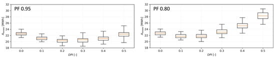 - A box plot of yearly losses, lines, and TR for increasing DPI. An average decrease of 15.6% in losses was calculated for DPI 0.3. Losses as a function of DPI form a typical bathtub curve. If PV represents up to 30% of consumed energy, a positive effect in lowering power losses is observed.