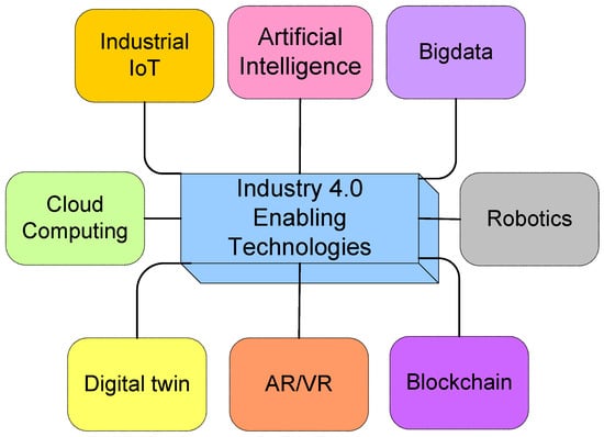 Industry 4.0 is transforming the way in which companies achieve, improve, and distribute their products. Manufacturers are incorporating new technologies into their manufacturing facilities and processes. Organizations are required to embrace this impending change in their operations, as well as in the larger supply, due to the shifting business trends in network chains [25]. Industry 4.0 seeks to deliver real-time information on production, machines, and component flow by combining smart manufacturing, smart goods, and the IoT. These data are combined to help managers to make decisions, track performance, and track materials in real time [26]. Figure 3 illustrates the Industry 4.0-enabling technologies that have already shown an impact in the various study areas for digitalization and sustainability.