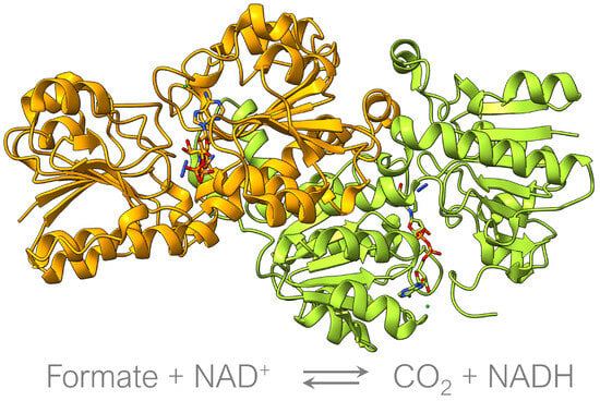 - Tishkov, V.I.; Popov, V.O. Catalytic mechanism and application of formate dehydrogenase. Biochem. Biokhimiia 2004, 69, 1252–1267. [Google Scholar] [CrossRef]