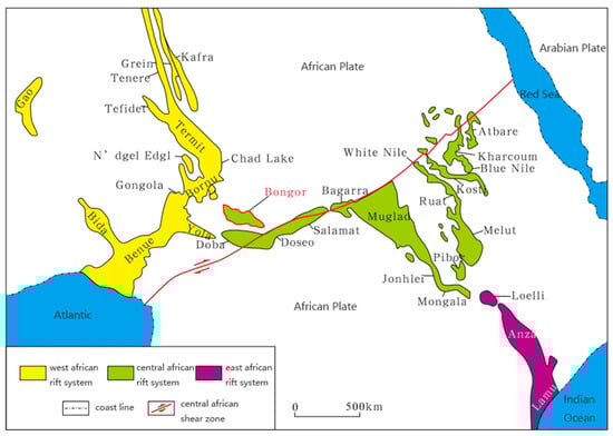 Regional tectonic location of Bongor basin.