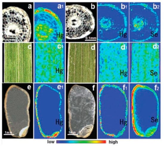 - Zhao, J.T.; Li, Y.F.; Li, Y.Y.; Gao, Y.X.; Li, B.; Hu, L.; Zhao, Y.L.; Chai, Z.F. Selenium modulates mercury uptake and distribution in rice (Oryza sativa L.), in correlation with mercury species and exposure level. Met. Integr. Biometal Sci. 2014, 6, 1951–1957. [Google Scholar] [CrossRef]