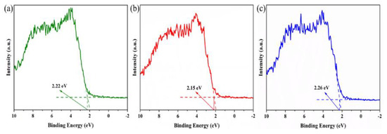 Figure 9. VB-XPS diagram of photocatalysts: (a) BWO-1.5, (b) BWO-2, and (c) BWO-3.