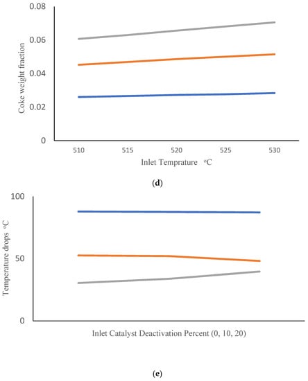 | coke weight fraction on acidic function of catalyst, kg kg−1 | |