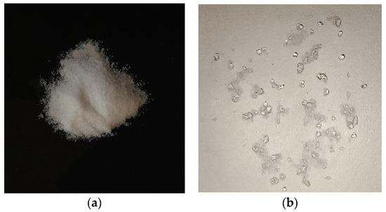 (2) Preformed particle gel (PPG): PPG was developed by the Exploration and Development Research Institute of Daqing Oilfield. The particles have an expansion ratio of three and range in size from 0.15 mm to 0.3 mm, as shown in Figure 2.