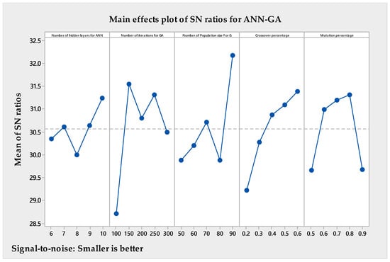 Main effects plot of SN ratios for ANN-GA.
