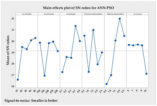 Main effects plot of SN ratios for ANN-PSO.