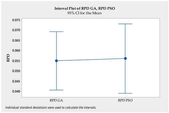 Two-sample t-test for RPD ANN-GA vs. RPD ANN-PSO.