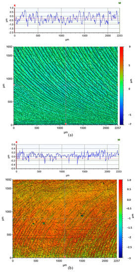 After milling, in the center of the milled zone along the feed direction, five portions of 2.2 mm and 1.7 mm were scanned for each of the three orientations (Direction A, Direction B, and Direction C). The roughness of the surface was determined by taking the mean of five readings obtained in each direction.