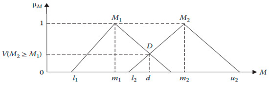 Step 3: To compare the fuzzy numbers, the degree of possibility M2 ≥ M1 is calculated as: