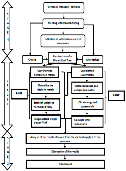 Additionally, Ref. [25] utilized three decision-making methods, AHP, ANP, and graphs. These methods provide selection indices for the different alternatives considered. Similarly, Ref. [26] employed fuzzy techniques and financial analysis to quantify the tangible and intangible benefits of manufacturing technology alternatives. These methods provide selection indices for the different considered alternatives. In turn, Ref. [27] employed a two-filter fuzzy method to select paper pulp manufacturing technology, considering economic, technical, and risk dimensions in the first filter, and strategic, business, supplier, and environmental dimensions in the second filter. On the other hand, Ref. [28] conducted a study to select technology considering operational and environmental aspects, using COPRAS-G and EVAMIX techniques. The authors of [29] designed a maintenance support system with FUZZY–AHP and selected technical, cost, and risk dimensions. Likewise, Ref. [30] utilized cross-entropy with fuzzy numbers and multicriteria methods to select robots. Additionally, Ref. [31] used stochastic multicriteria methods for robot selection, while Ref. [32] proposed a hybrid model for the selection of advanced digital technologies. On the other hand, Ref. [33] conducted a financial portfolio analysis using a hybrid method with Fuzzy and ANP. Additionally, in the selection of materials for 3D-printed fiber-reinforced composites, Ref. [34] employed multicriteria methods. Moreover, Ref. [20] conducted a comparative study of a causal model and a multicriteria model to assess technology in technology and supplier management. On another note, Ref. [35] identified eight mechanisms for reducing digital waste that can support lean practices and enhance decision making. These studies enable managers to identify digital technologies that can effectively support their respective process improvement activities. Continuing with this trend, Ref. [36] describes how these cutting-edge technologies are utilized in sustainable manufacturing. A comprehensive study of multicriteria methods in the technology selection process in additive manufacturing has been conducted by [37]. Lately, Ref. [38] developed a powerful hybrid MCDM method to evaluate the influence of Industry 4.0 technologies on manufacturing strategies. They utilized AHP to calculate the weights of criteria and subcriteria, and the fuzzy–TOPSIS method to rank the industry 4.0 technologies. The results showed that cost is the most critical criterion in the implementation of Industry 4.0 technologies, and additive manufacturing (AM) is the most suitable Industry 4.0 technology to address global competition. Recently, in the study by [38] several multicriteria decision-making methods (MCDM) are used to select an optimal robot depending on the application.