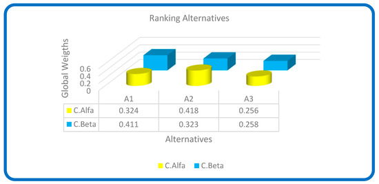 Once the comparison matrices have been completed following the scale defined in Table 1, the process is continued to obtain the fuzzy comparison matrices. The consistency of each fuzzy matrix is evaluated. After this evaluation, the extended Chang method is applied, as detailed in Section 2.2.