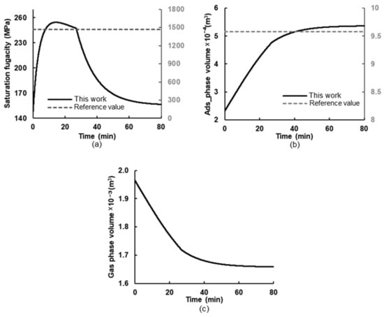 Figure 3 summarizes the deviations in the compressibility factor z computed from both the van der Waals (VDW) and from the NIST Reference Fluid Thermodynamic and Transport Properties Database (REFPROP-version 10.0). At low pressures, deviations in the compressibility factor z either computed from the two methods are quite small, less than 6% at 10 MPa, but become significant at higher pressure and low temperature, reaching 26% at 20 MPa, 80 K. The NIST-REFPROP database was thus retained for the determination of the compressibility factor z []. In Equation 24, Vg is the volume of hydrogen in the bulk phase and is determined as follows: