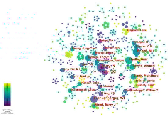 Visualization result of the productive subject with their collaborative links (produced by CiteSpace).